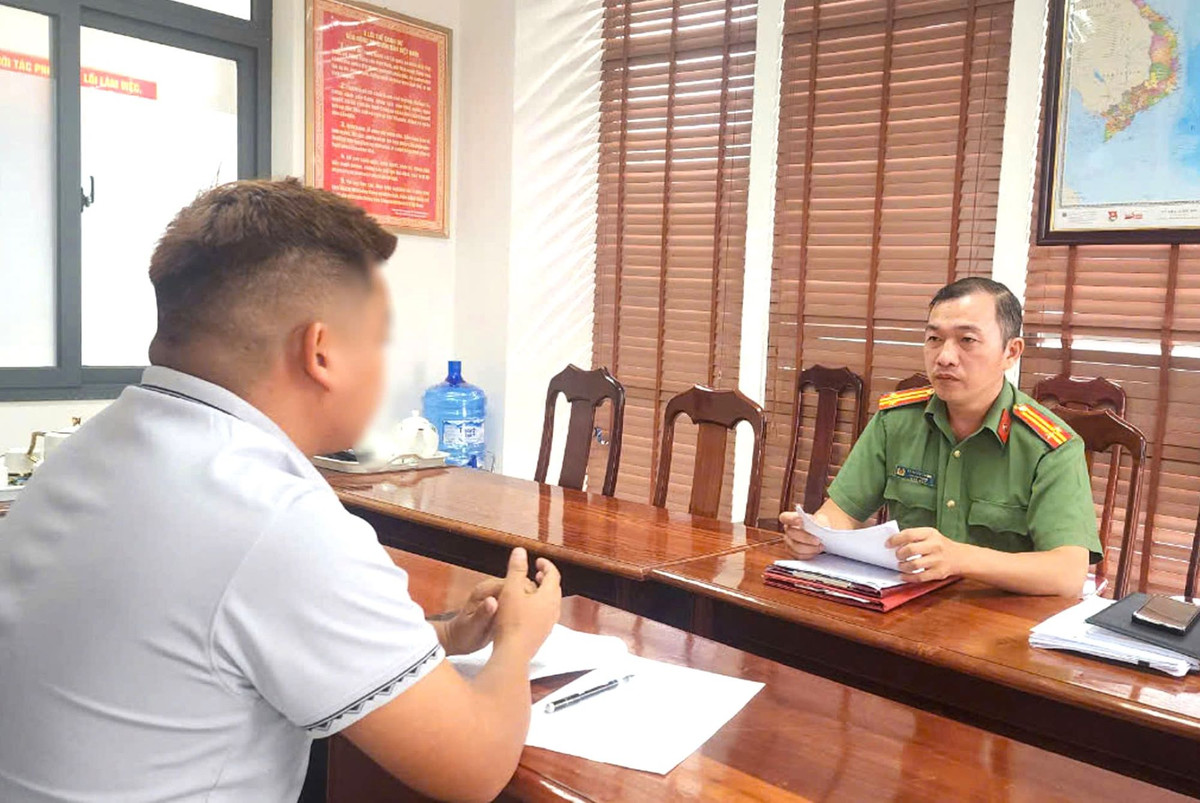 Cơ quan công an làm việc với LV.Q. (Ảnh: Công an cung cấp)