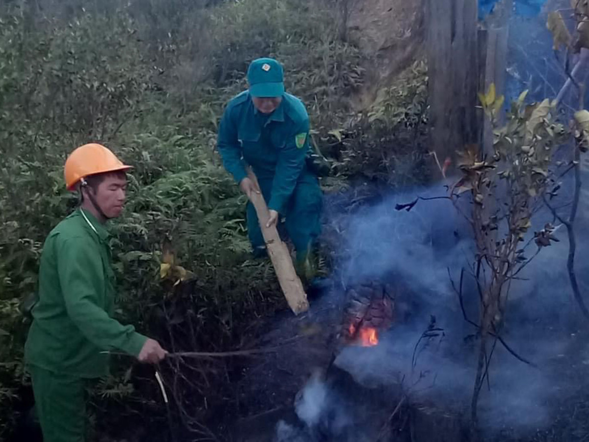 Sau hơn 1 tiếng đồng hồ, các lực lượng đã tiếp cận được đám cháy. Tuy nhiên do địa hình phức tạp, chia cách, độ dốc lớn, gió to, thời tiết khô hanh nên các lực lượng chỉ xử lý cục bộ được một số vị trí.