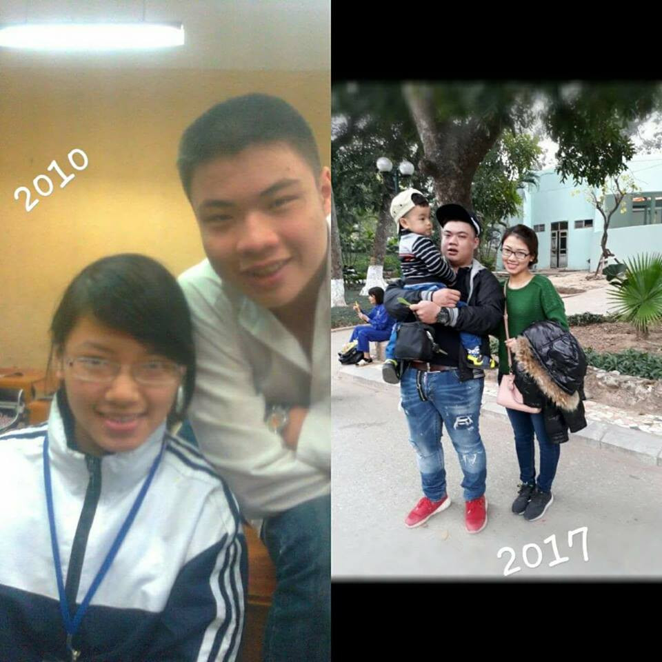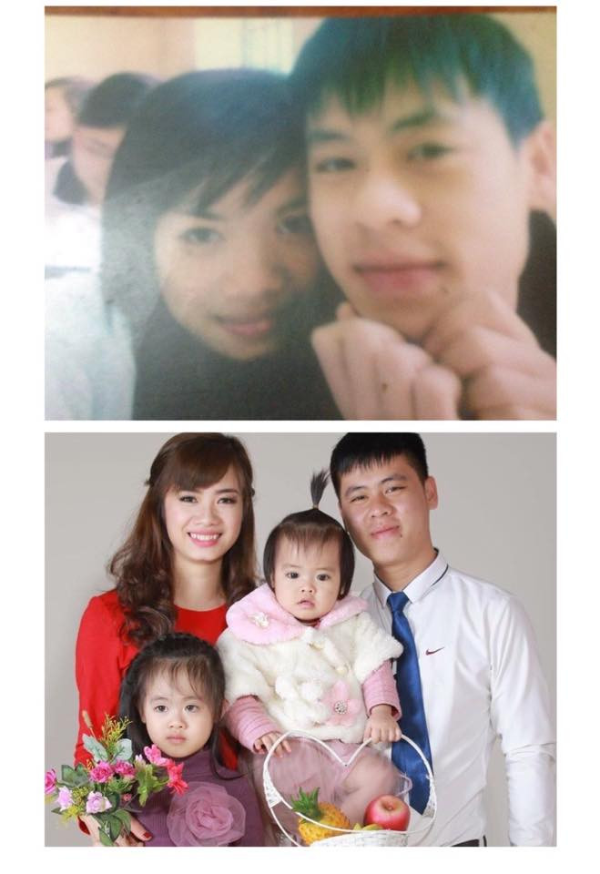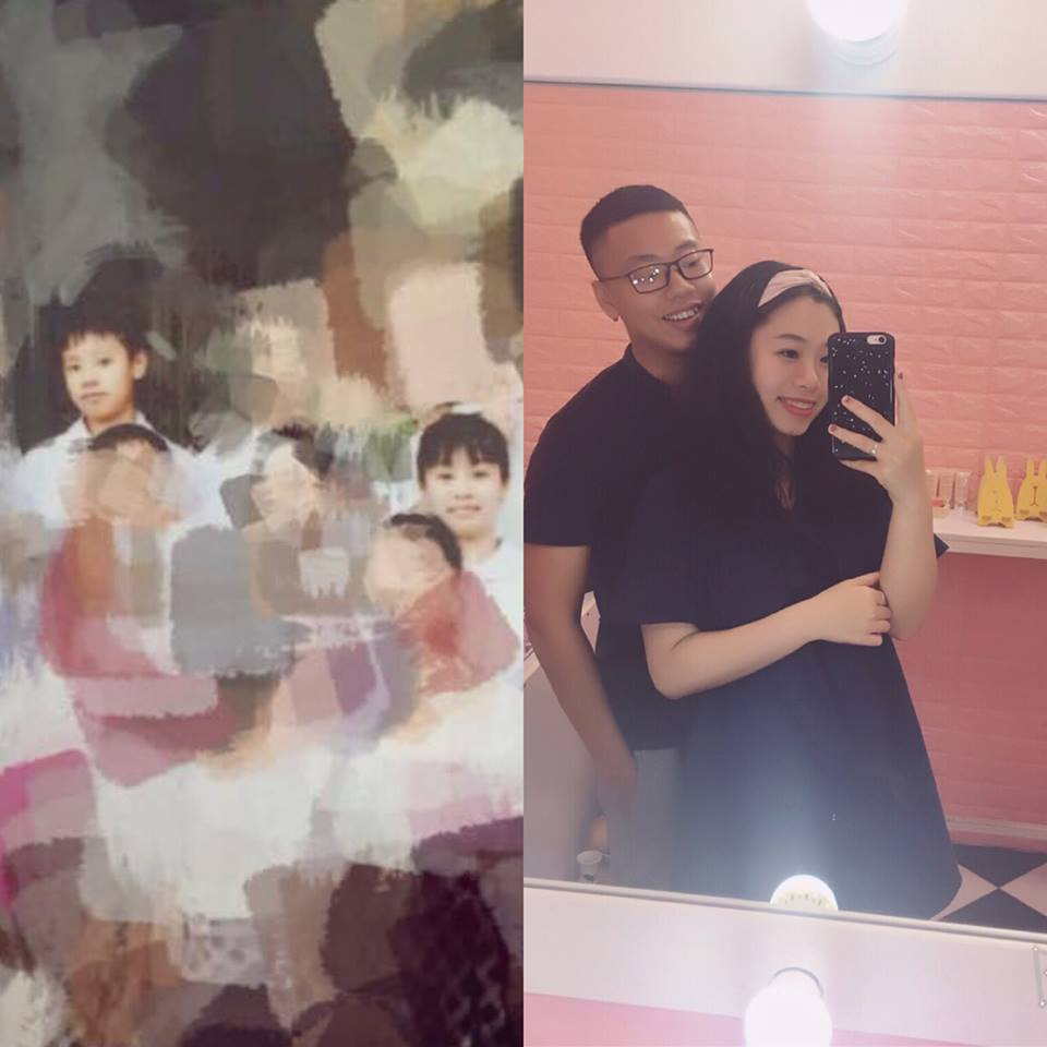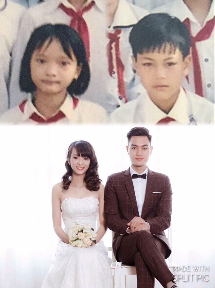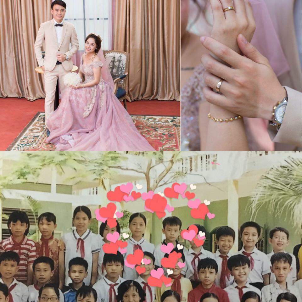 "Bọn tớ thích nhau từ năm lớp 3 mà không đứa nào dám nói. Năm lớp 6 thì tớ chuyển trường rồi mỗi đứa một nơi. Mười một năm biệt tăm không một lần gặp lại. Thực ra chẳng bao giờ dám nghĩ sẽ có ngày gặp lại nhau cả. Nếu không có một con bạn tự dưng lập group cấp 1 trên facebook. Lúc gặp lại thì cả 2 đều có người yêu rồi nên cũng chỉ nói chuyện vô tư, cảm giác quý mếm nhau bình thường thôi. Trải qua biết bao nhiêu chuyện, yêu xa hơn 1 năm Hải Phòng- Hải Dương rồi cũng đến ngày về chung một nhà'' FB Nguyễn Hồng Ngọc chia sẻ".