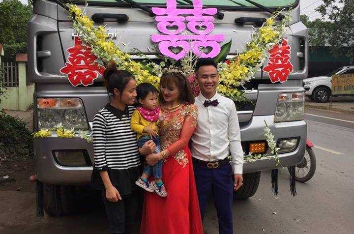 Mới đây, trên mạng xã hội vừa đăng tải hình ảnh về màn rước dâu bằng những chiếc xe tải được trang trí vô cùng cầu kỳ với hoa tươi, dải băng, chữ hỉ. Theo tìm hiểu, đám cưới có một không hai này được diễn ra tại xã Tề Lỗ (huyện Yên Lạc, Vĩnh Phúc).