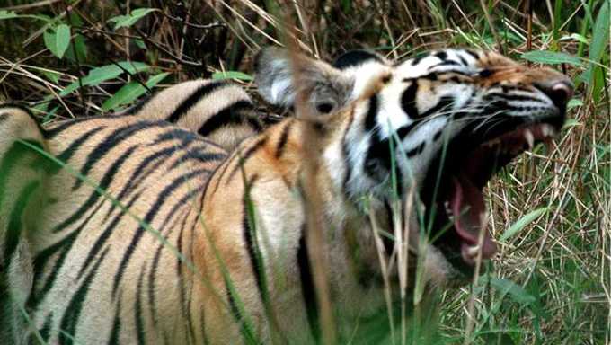 Là thợ săn thiện nghệ, nên nhìn ánh mắt đỏ rực thành tia đó, ông Tiện biết ngay là hổ. Ông tiến về phía bên phải tránh vật cản là bụi lau để quan sát rõ hơn. Không phải đoán mò gì nữa, đó chính là thần hổ xám, con hổ bị chột một mắt bởi thợ săn khét tiếng xứ Thành Yên.