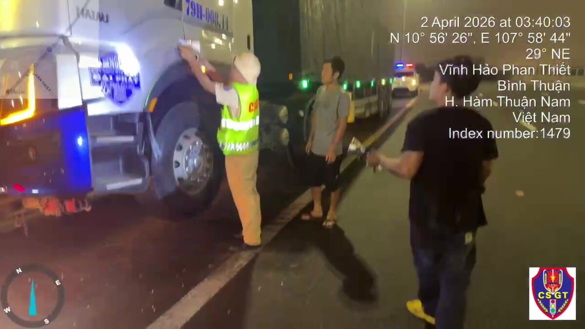 Quá trình tuần tra, rạng sáng ngày 2/4, tại Km234 tuyến cao tốc Vĩnh Hảo - Phan Thiết, tổ công tác phát hiện và lập biên bản vi phạm hành chính đối với tài xế N.T.A. (SN 1993, trú tỉnh Khánh Hòa) điều khiển xe ô tô đầu kéo biển kiểm soát 79H-008.xx kéo theo rơ-moóc 79R-008.xx nhưng không có giấy phép lái xe theo quy định.