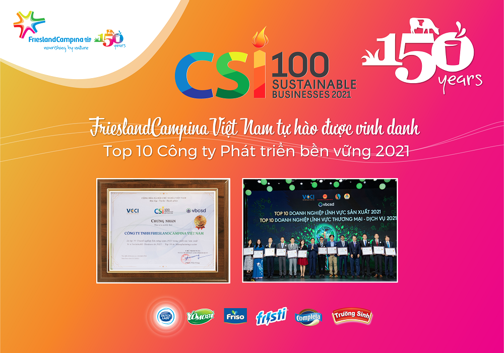 Năm 2021 đánh dấu cột mốc mới trong hành trình phát triển 150 năm của Tập đoàn FrieslandCampina khi được vinh danh top 3 bảng xếp hạng "Sáng kiến tiếp cận dinh dưỡng toàn cầu" (ATNI). Kết quả này có được nhờ quá trình hợp tác bền lâu với những người nông dân tại nhiều quốc gia đi cùng tiến trình cải tiến liên tục và quản lý chất lượng hướng đến phát triển bền vững.