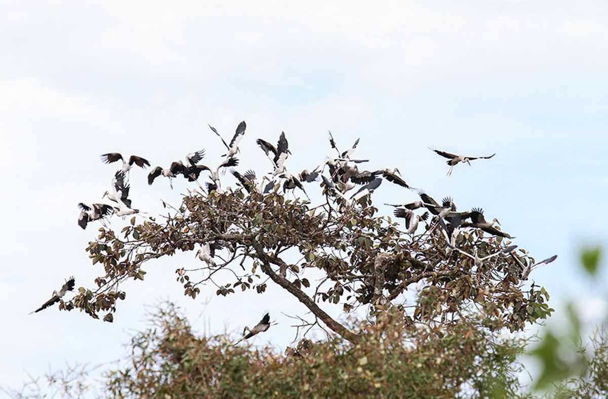 Đàn cò nhạn trú trong khu vực Vườn Quốc gia Lò Gò - Xa Mát. (Ảnh: Giang Phương)
