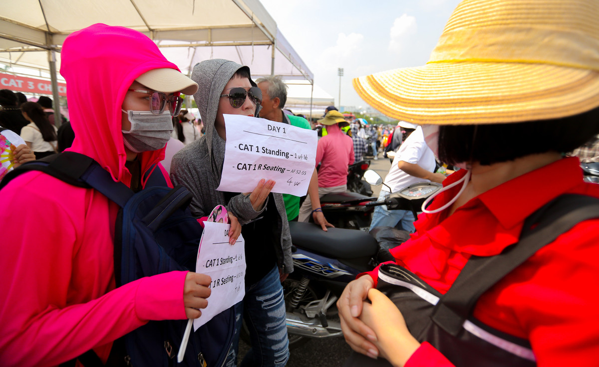 Giờ diễn sắp bắt đầu, vé thì không thể bán được khiến nhiều người lo lắng. “Tôi ôm 4 cặp vé VIP với giá gốc là 9,8 triệu/vé, giờ giảm giá xuống còn 10 triệu/2 vé, với hy vọng có thể thu lại được chút tiền nhưng ngồi ở cửa sân vận động 2 ngày rồi mà tôi vẫn chưa bán được”.