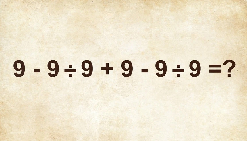 Câu hỏi toán học như sau: Cho phép tính 9 – 9 ÷ 9 + 9 – 9 ÷ 9, người chơi hãy tìm đáp án đúng nhất cho đề bài này.