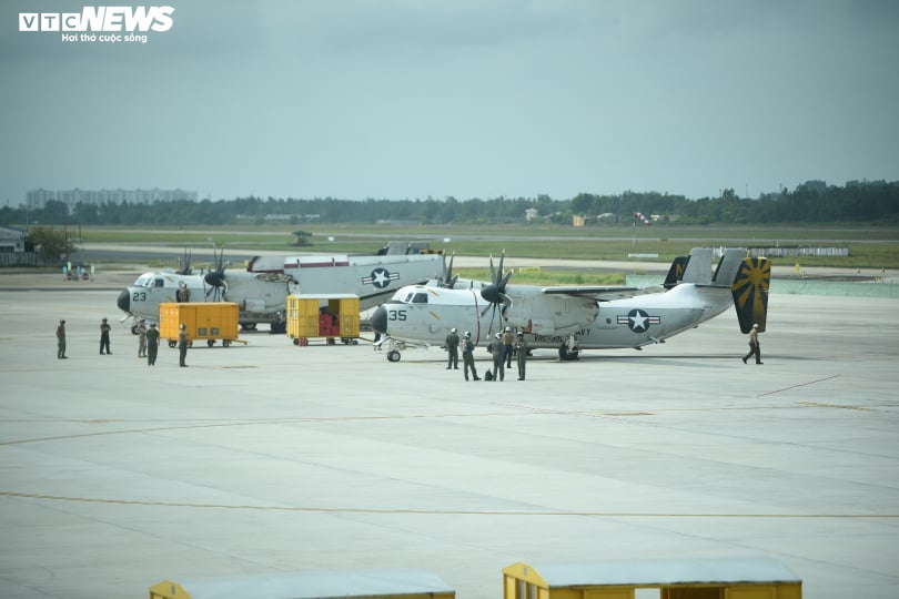 Hai phi cơ C2-E xuất hiện sáng nay ở sân bay Đà Nẵng được thiết kế chuyên biệt cho tàu sân bay. Máy bay cung cấp khả năng hỗ trợ hậu cần quan trọng như vận chuyển người khi cần thiết cho các nhóm tàu sân bay.