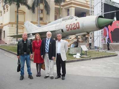 Vợ chồng Trimble- Rachel cùng Trần Việt bên chiếc Mig-21 mà Trần Việt từng lái.