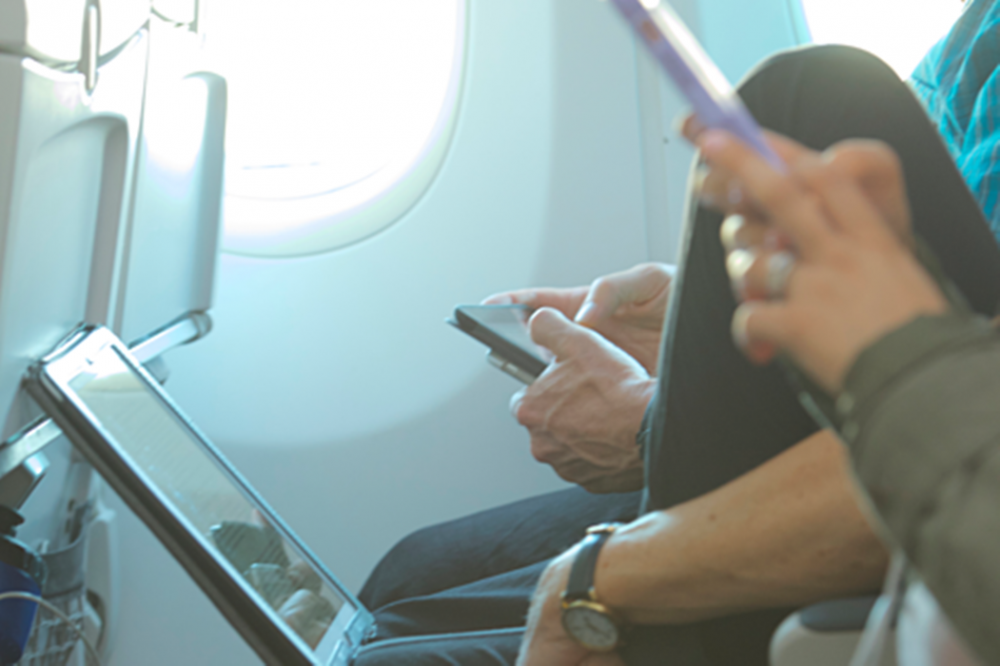 Cục hàng không liên bang Mỹ (FAA) nhận định các thiết bị điện tử gây ảnh hưởng xấu đến thông tin liên lạc và định vị máy bay. Cơ quan này giao cho các hãng hàng không tự quyết định thiết bị điện tử nào được dùng trên máy bay. Hầu hết hãng hàng không đều tuân thủ theo hướng dẫn của FAA rằng chỉ được dùng khi máy bay ở độ cao hơn 3.000 mét, để phi công có đủ thời gian xử lý các tình huống khẩn cấp có thể xảy ra.
