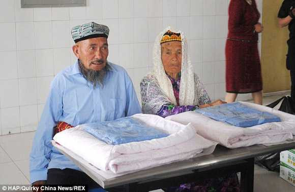 Ông Aimti phải hai lần cầu hôn mới nhận được cái gật đầu đồng ý của bà Azatihan Sawuti. 6 tháng trước, cả hai đã phải lòng nhau tại một viện dưỡng lão ở Trung Quốc. Hôn lễ của họ được tổ chức khá khiêm tốn nhưng ấm cúng, với sự có mặt của rất nhiều người già sống cùng viện dưỡng lão, nằm ở Tân Cương, phía tây Trung Quốc.