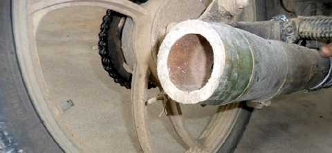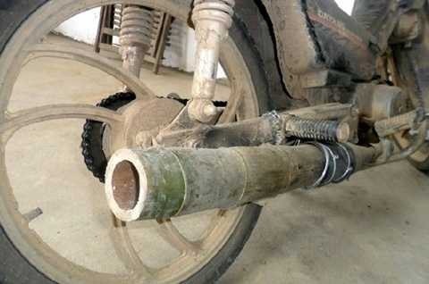 (VTC News) - Anh Fang Jen sống tại thị trấn Sùng Tả (tỉnh Quảng Tây, Trung Quốc) đã khiến nhiều người dân ở đó phát phì cười với "sáng chế" ống pô xe máy từ ống tre.Khi chiếc pô xe máy bị hỏng khiến xe phì khói và kêu váng ngoài đường, Fang Jen dường như không có tiền để thay đồ mới, nên quyết định thực hiện theo phong cách độc đáo, tự chế chiếc ống pô bằng thứ có sẵn trong thiên nhiên.