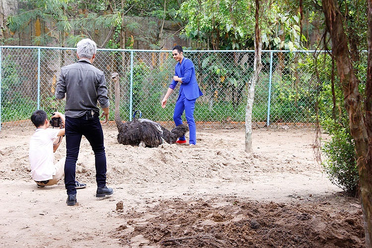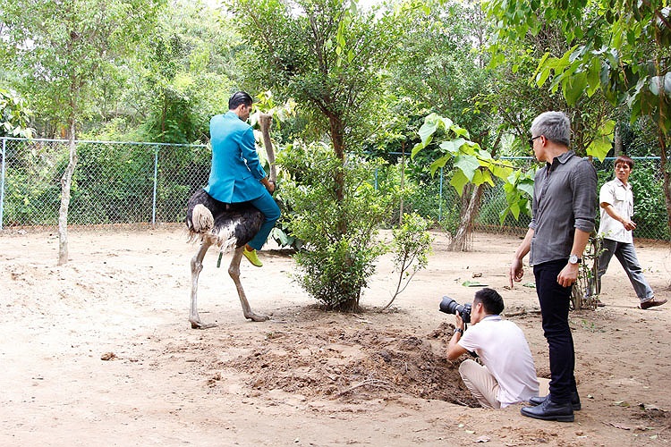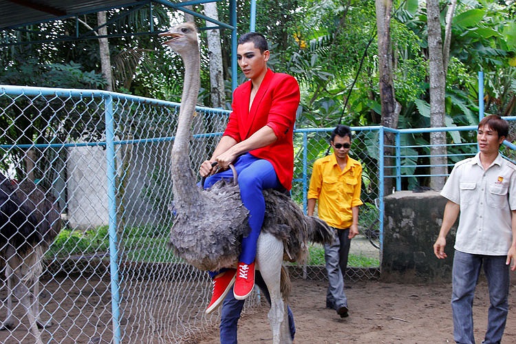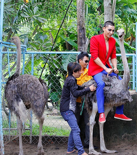 Tuấn Việt thì khá máu khi được cưỡi đà điểu.
