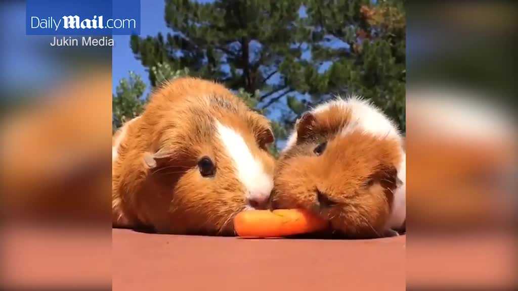 Cảnh 2 chú chuột lang háu ăn tranh giành nhau một củ cà rốt khiến người xem phì cười.