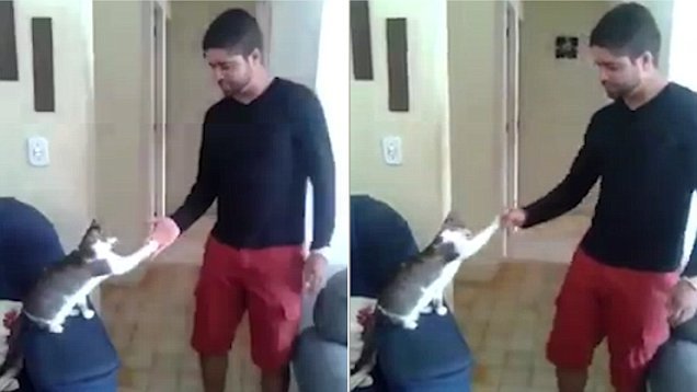 Phì cười clip mèo đập tay cực ăn ý với chủ