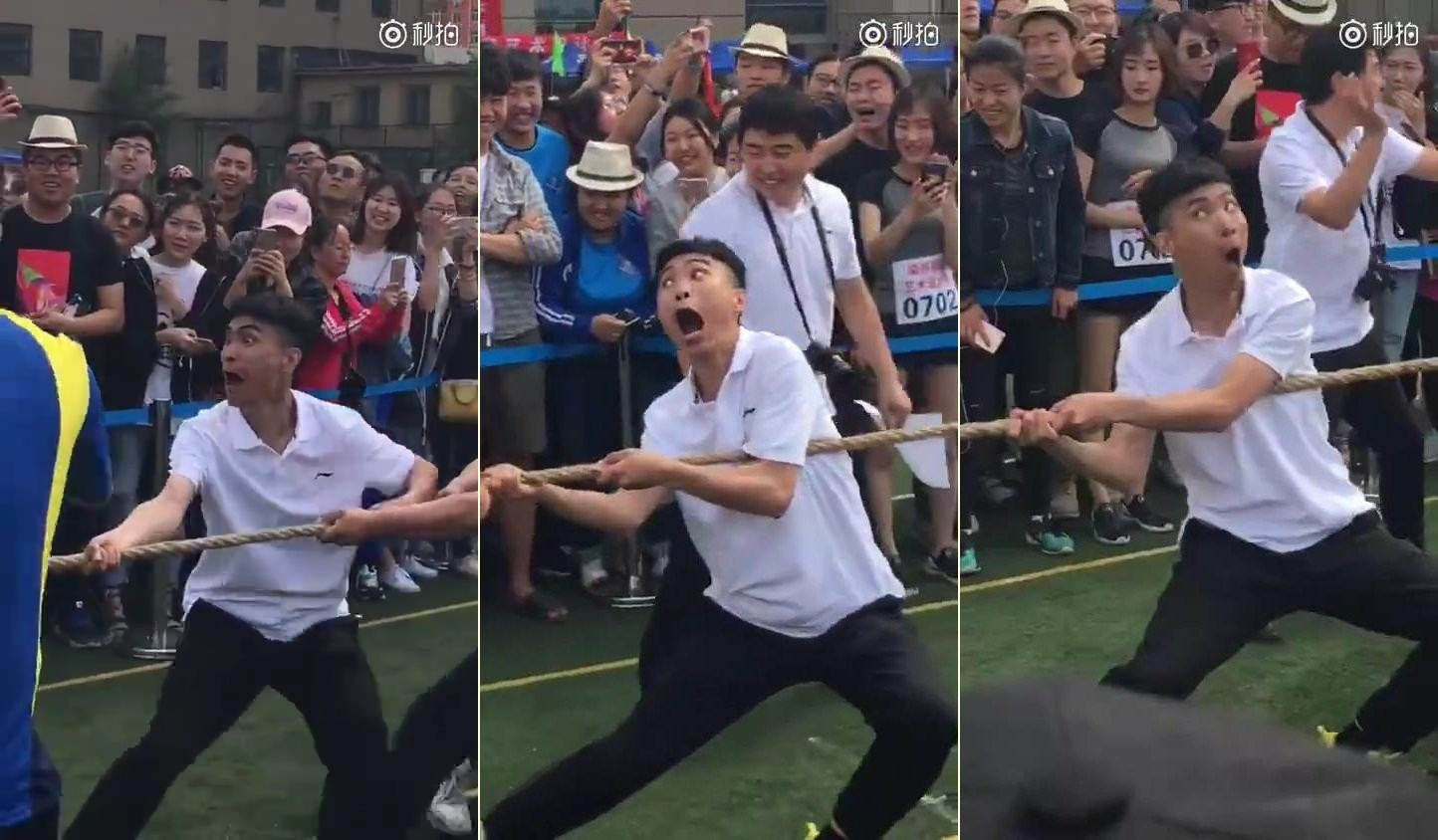 Phì cười với loạt biểu cảm khó đỡ của nam thanh niên chơi kéo co