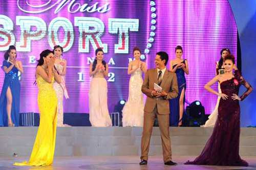 | Có lẽ bị mất tập trung bởi những thí sinh xinh đẹp nên Bình Minh liên tục mắc lỗi trong khi làm MC cho đêm chung kết Miss Sport |