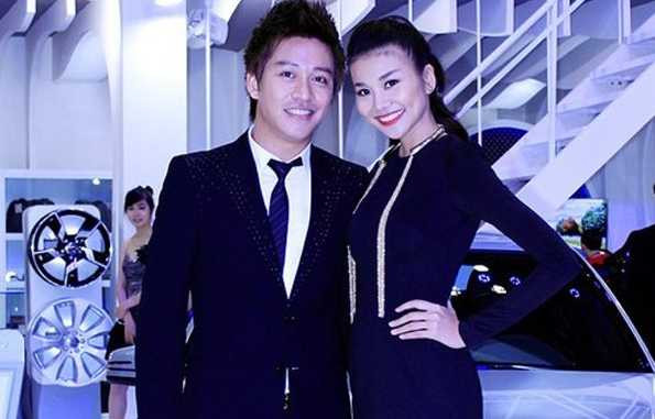 Tuấn Hưng kiễng chân cải thiện chiều cao khi đứng cạnh siêu mẫu Thanh Hằng trước ống kính.
