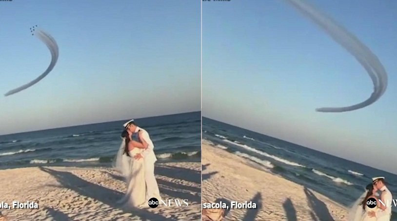 19/05/2017 13:35:00 +07:00Phi đội "Thiên thần xanh" của Hải quân Mỹ trình diễn ngoạn mục trên bầu trời, khuấy động đám cưới của cặp đôi trẻ trên bãi biển Pensacola, bang Florida, Mỹ.