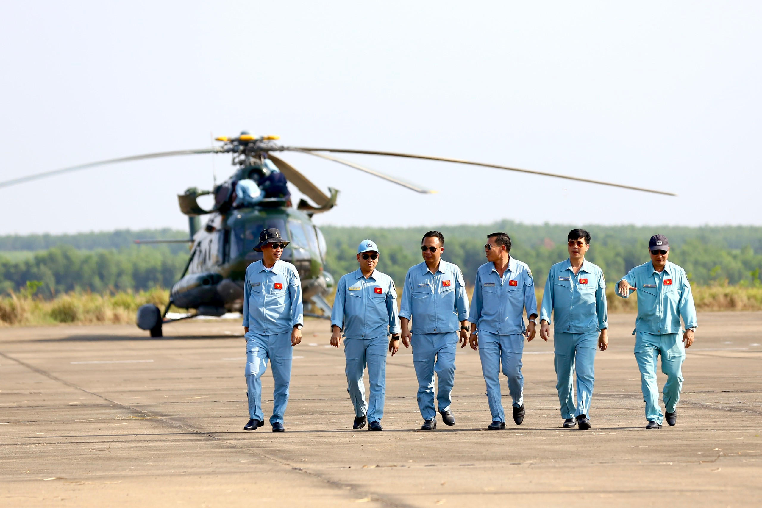 7h, các phi công lên trực thăng, sẵn sàng thực hiện nhiệm vụ.