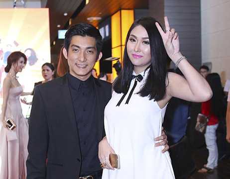| Vợ chồng Phi Thanh Vân tình tứ trên thảm đỏ. |