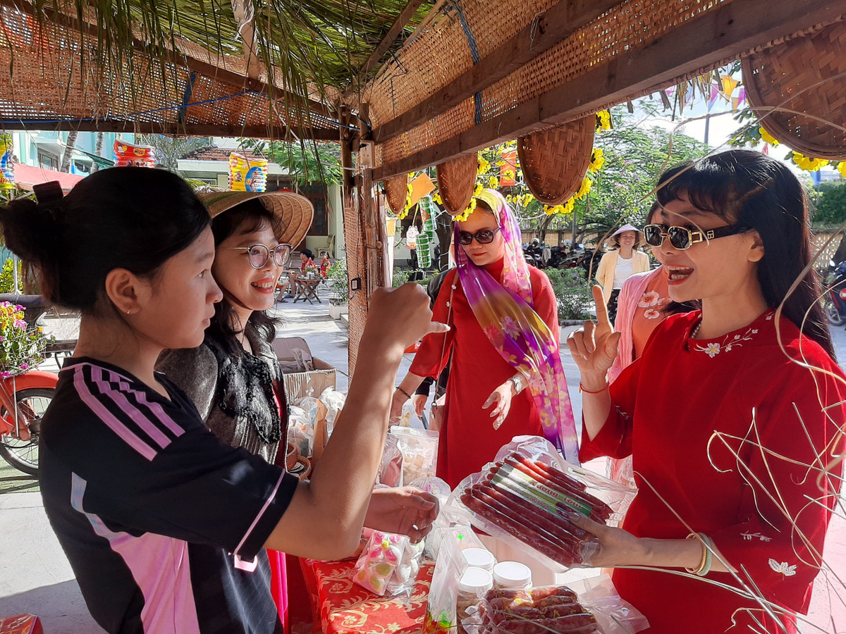 Ở phiên chợ đặc biệt này có khoảng 10 gian hàng, bày bán mứt gừng, mứt dừa, bánh thuẫn, bánh kẹp, bánh phục linh, cốm… đều do chính các em học sinh khuyết tật và giáo viên của Trung tâm làm.
