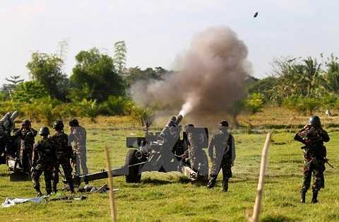 | Quân đội Philippines thuộc Sư đoàn bộ binh số 6 nã pháo trong chiến dịch truy quét quân nổi dậy |