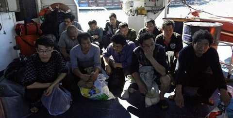 | 12 ngư dân Trung Quốc bị cảnh sát Philippines bắt giữ hồi tháng 4/2013 |