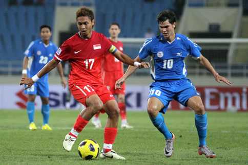 | Singapore (áo đỏ) phải cố gắng hơn trong 2 trận còn lại, gặp Myanmar và Việt Nam. (Ảnh: Quang Minh) |