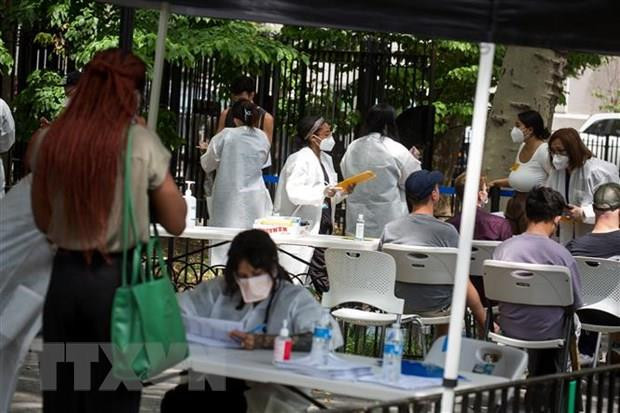 Người dân xếp hàng chờ tiêm vaccine phòng bệnh đậu mùa khỉ. (Ảnh minh họa THX/TTXVN)