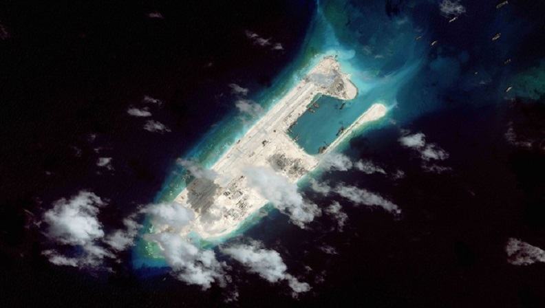 "Quận Nam Sa" do Trung Quốc tự dựng lên, đặt trụ sở phi pháp tại Đá Chữ Thập. (Ảnh: CSIS)