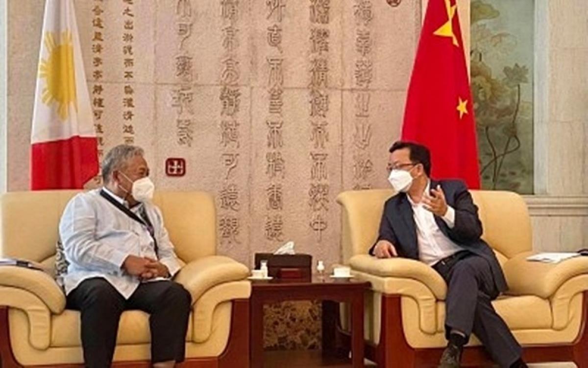 Bộ trưởng Giao thông Philippines gặp Đại sứ Trung Quốc để thảo luận các dự án giao thông. (Ảnh: PNA)