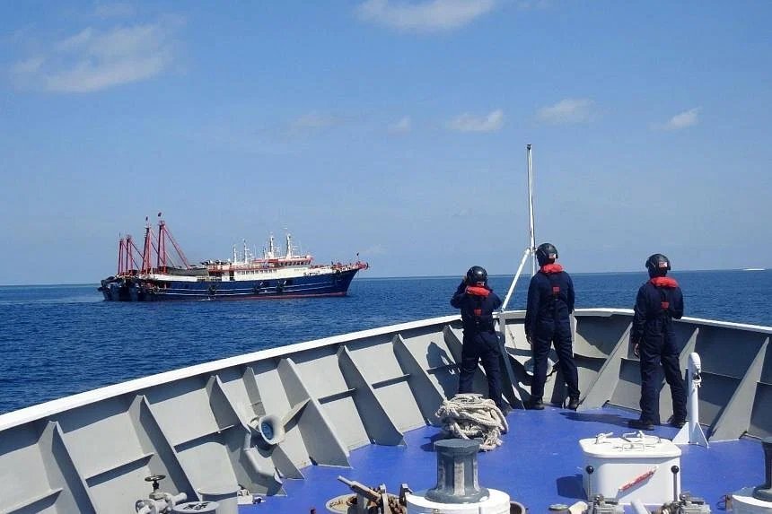 Lực lượng bảo vệ bờ biển Philippines giám sát tàu Trung Quốc. (Ảnh: EPA-EFE)