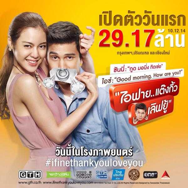 “I fine thank you love you” là tác phẩm điện ảnh mới nhất đạt được thành công lớn lao này. Hàng vạn lượt khán giả nô nức tới rạp thưởng thức bộ phim hài nhẹ nhàng này. Kết quả là “I fine thank you love you” suýt lập kỷ lục doanh thu.