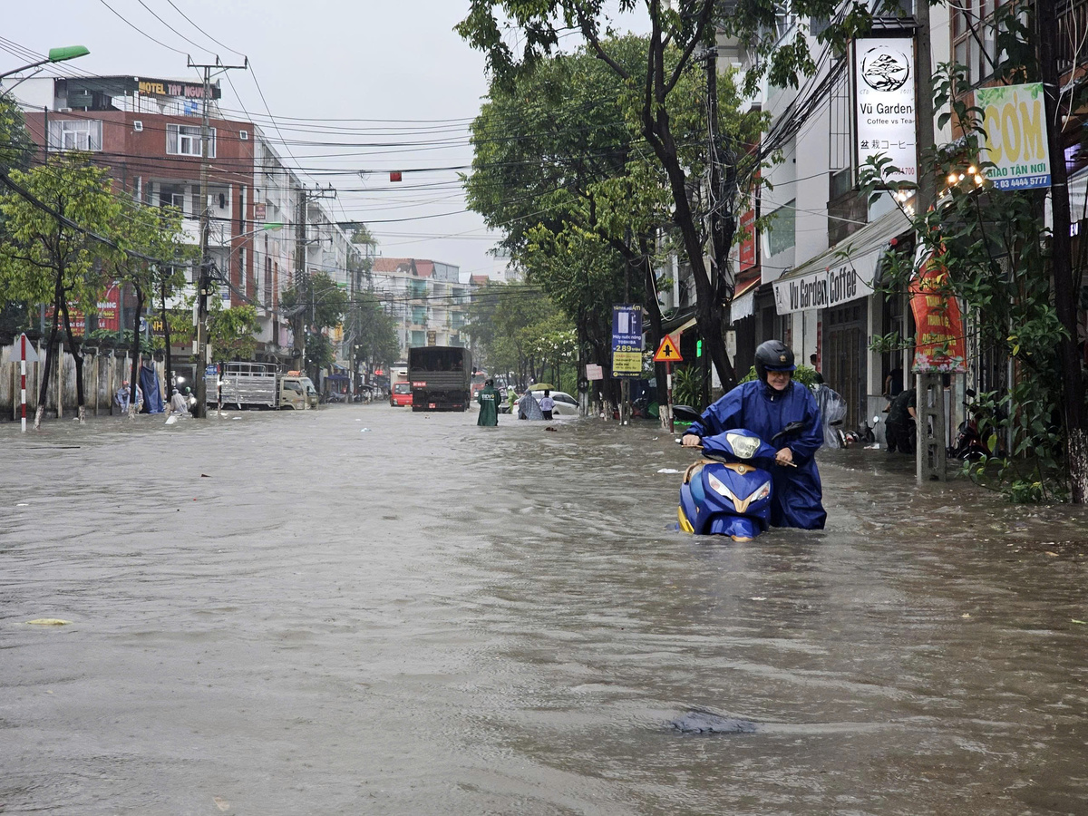 Sáng 16/10, sau hơn 3 tiếng mưa trắng trời, các tuyến đường lớn ở phường Bắc Nha Trang (tỉnh Khánh Hoà ) ngập sâu, có nơi hơn 50 cm.