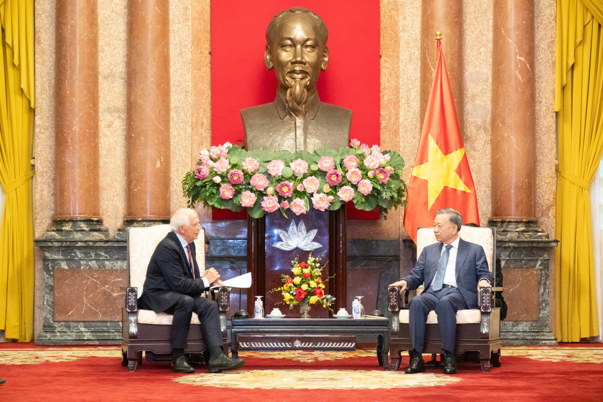 Phó Chủ tịch Hội đồng châu Âu EC Josep Borell hội kiến Chủ tịch nước Tô Lâm. (Ảnh: Thạch Anh)