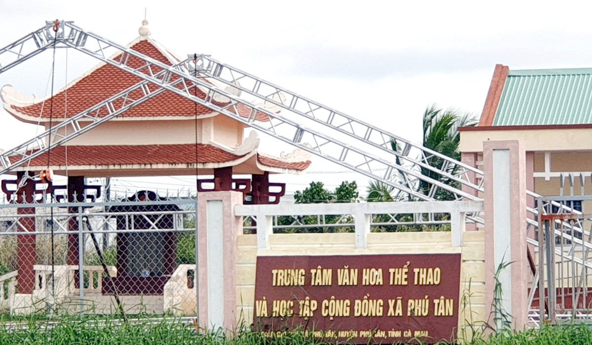 Trung tâm Văn hóa Thể thao xã Phú Tân - công trình được nhắc trong đoạn clip 'tố' phó chủ tịch huyện ở Cà Mau mặc cả 'lại quả'. (Ảnh: E.X)