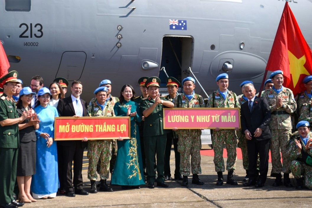 Phó Chủ tịch nước Võ Thị Ánh Xuân tiễn các sỹ quan lên đường làm nhiệm vụ gìn giữ hòa bình Liên hợp quốc.