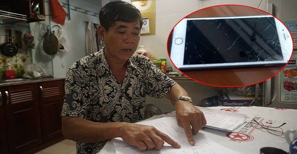 Chiếc điện thoại bị vỡ sau khi Phó chủ tịch phường gạt rơi.