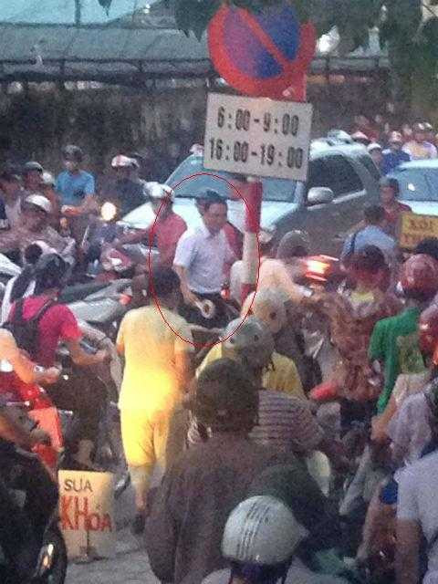 | Hình ảnh ông Khuất Việt Hùng trực tiếp phân luồng giao thông được người đi đường chụp lại. |
