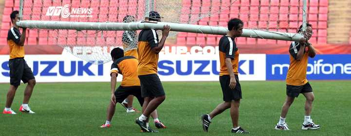Ấn tượng trong buổi tập chiều nay của ĐTVN tiếp tục là hình ảnh các “tướng quân” của đội tuyển như Phó chủ tịch VFF Nguyễn Lân Trung, Tổng thư ký VFF, kiêm Trưởng đoàn bóng đá Việt Nam Ngô Lê Bằng, các trợ lý, và có lúc là cả HLV Phan Thanh Hùng đều tham gia vào việc… khiêng cầu môn trong lúc các cầu thủ đang khởi động.