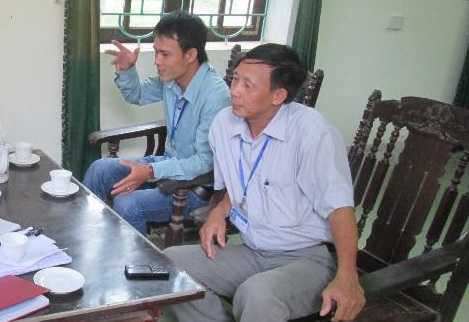 | Tường trình với Đảng ủy xã, ông Phượng nói rằng nợ nần do đầu tư kinh doanh. Trong ảnh là Chủ tịch xã Nghĩa Thuận và cán bộ địa chính xã. |