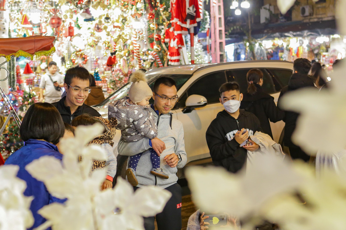 Khoảng 18h dòng người đổ về đây náo nhiệt, nhiều thời điểm con phố Hàng Mã ùn tắc do lượng người và phương tiện đông. Một số người đến đây để chụp ảnh lưu lại kỷ niệm, còn số khác đến để mua cho gia đình những món quà, đồ vật trang trí mùa Noel.