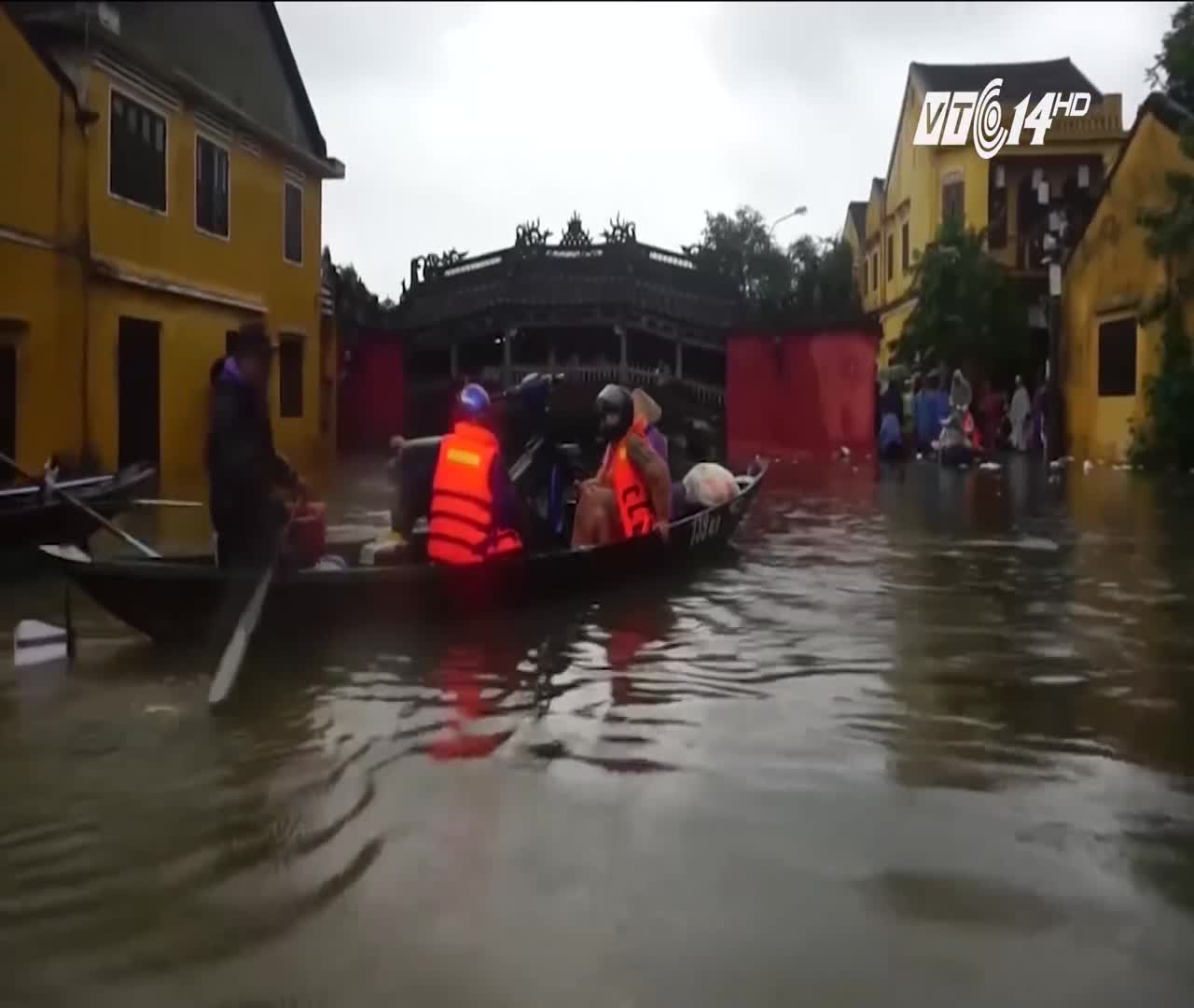 Phố cổ Hội An chìm trong biển nước, dân chèo thuyền thúng để đi lại