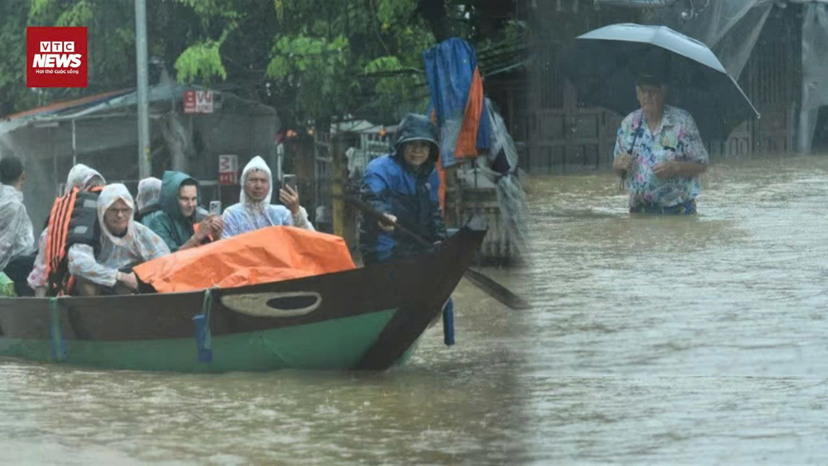 Phố cổ Hội An (Đà Nẵng) đang hứng trận lụt thứ 3 trong vòng 20 ngày, người dân tất tả dọn đồ chạy lũ.