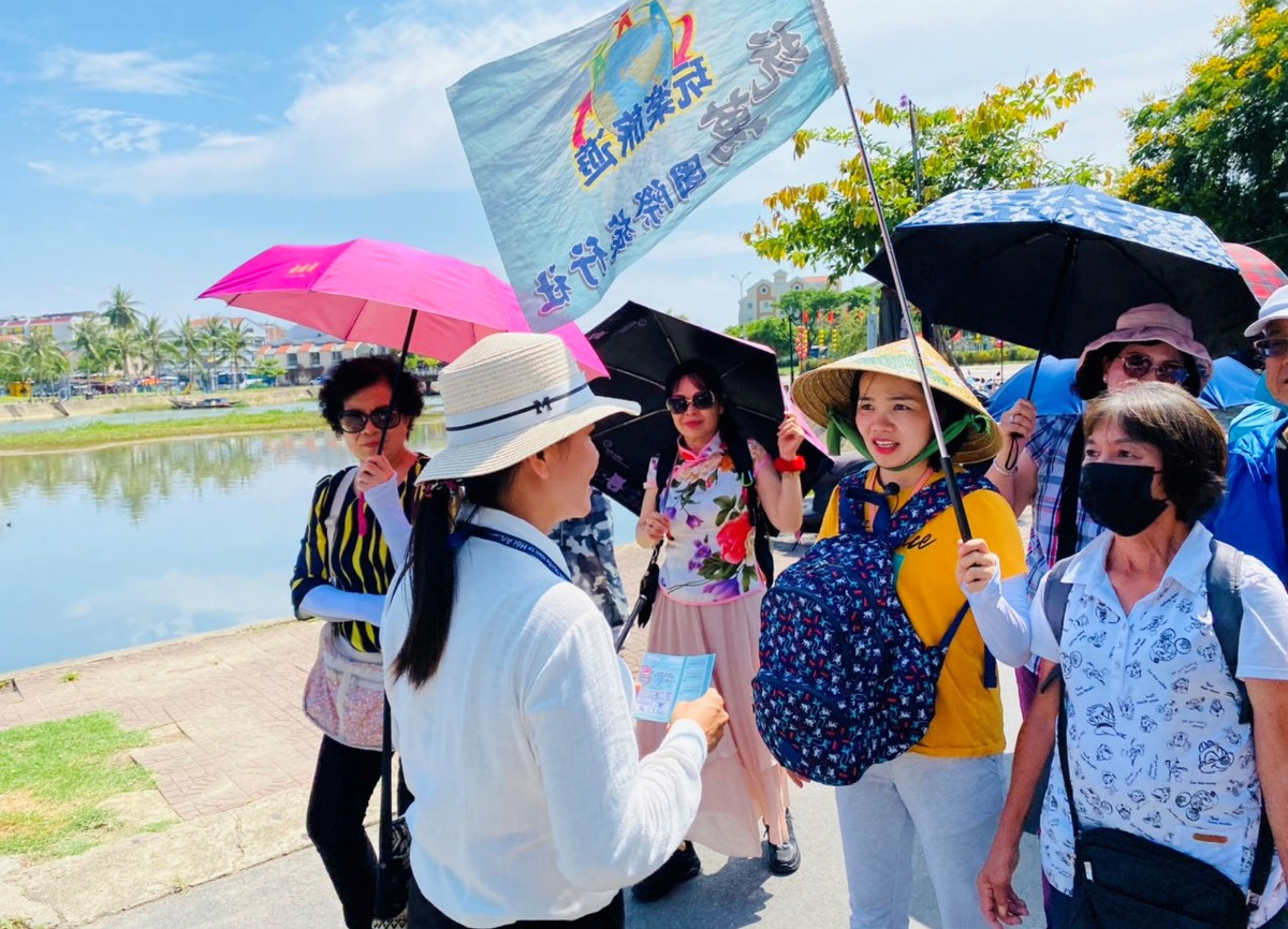 Đoàn khách Đài Loan mua vé và lựa chọn tham quan di tích Hội quán Quảng Đông.
