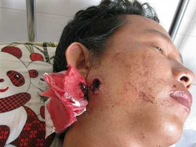 | Vết thương do trung tá Dũng bắn anh Quang. |