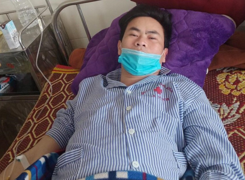 Bệnh nhân Nguyễn Quốc Long phải chuyển lên tuyến trên điều trị.