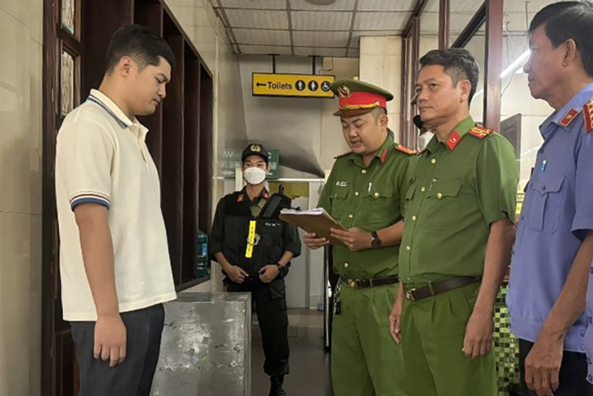 Công an đọc lệnh khởi tố, bắt tạm giam Lê Dương. (Ảnh: CACC)
