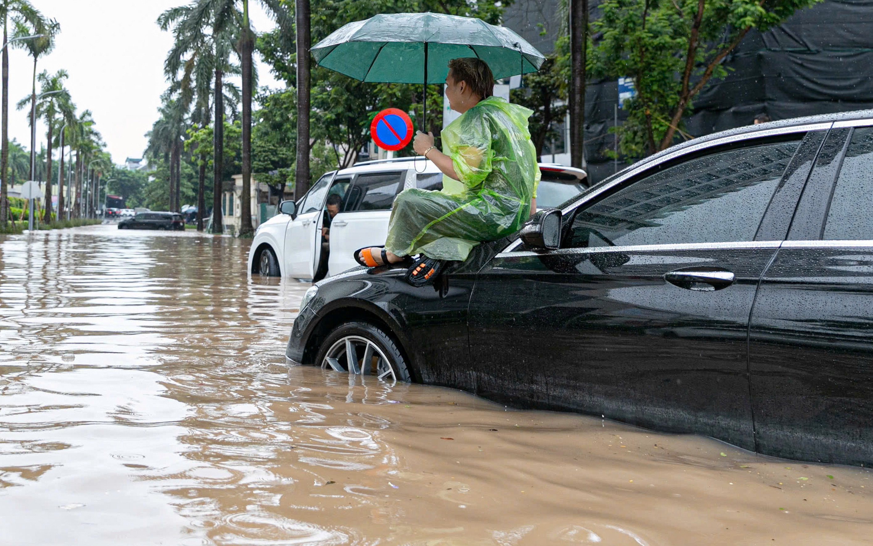 “Tôi gọi cứu hộ từ sớm nhưng họ cũng kẹt, không vào được ngay. Xe thì ngập nửa bánh, nếu cố khởi động sẽ hỏng máy. Đành ngồi chờ thôi”, một tài xế chia sẻ.