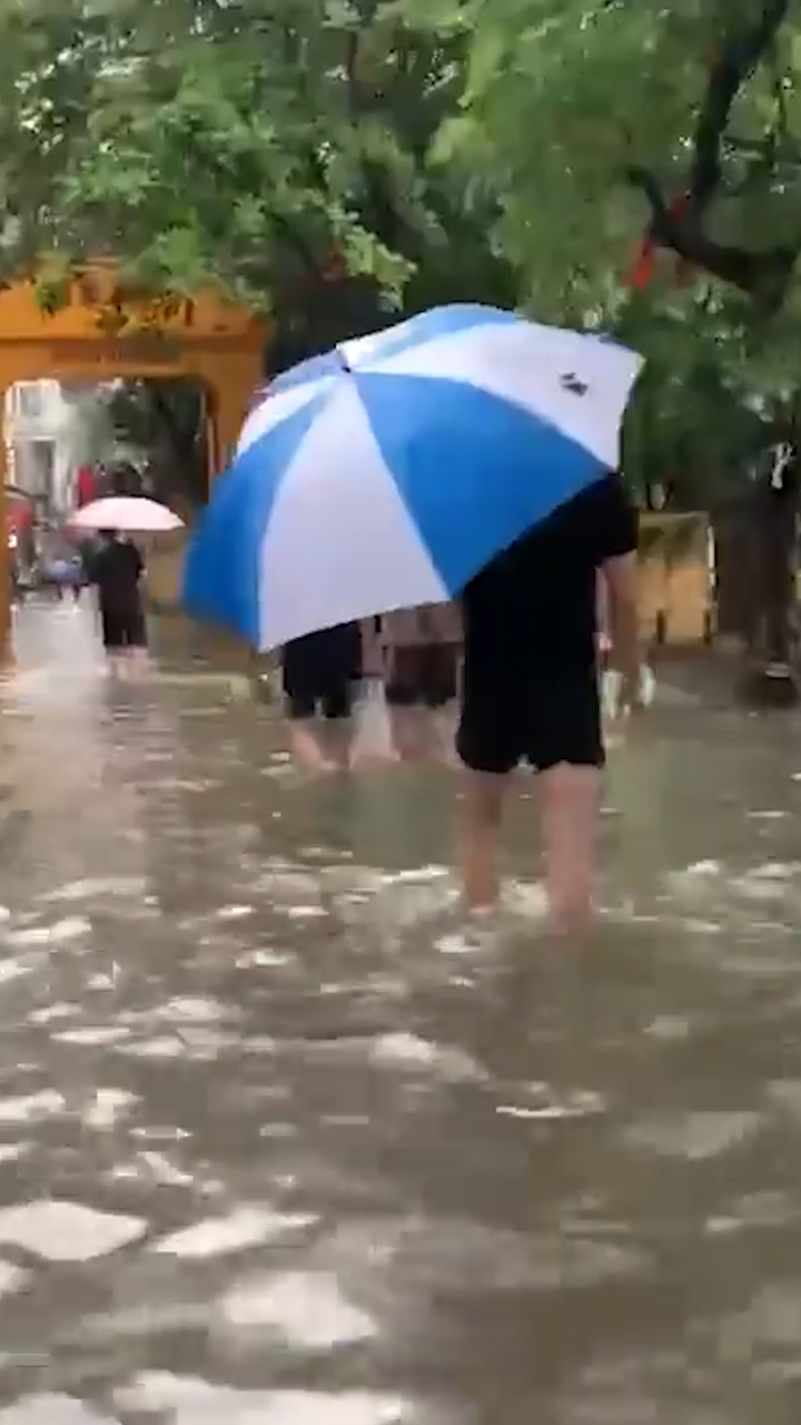 Phố Hà Nội hóa thành sông, người dân chật vật giữa biển nước